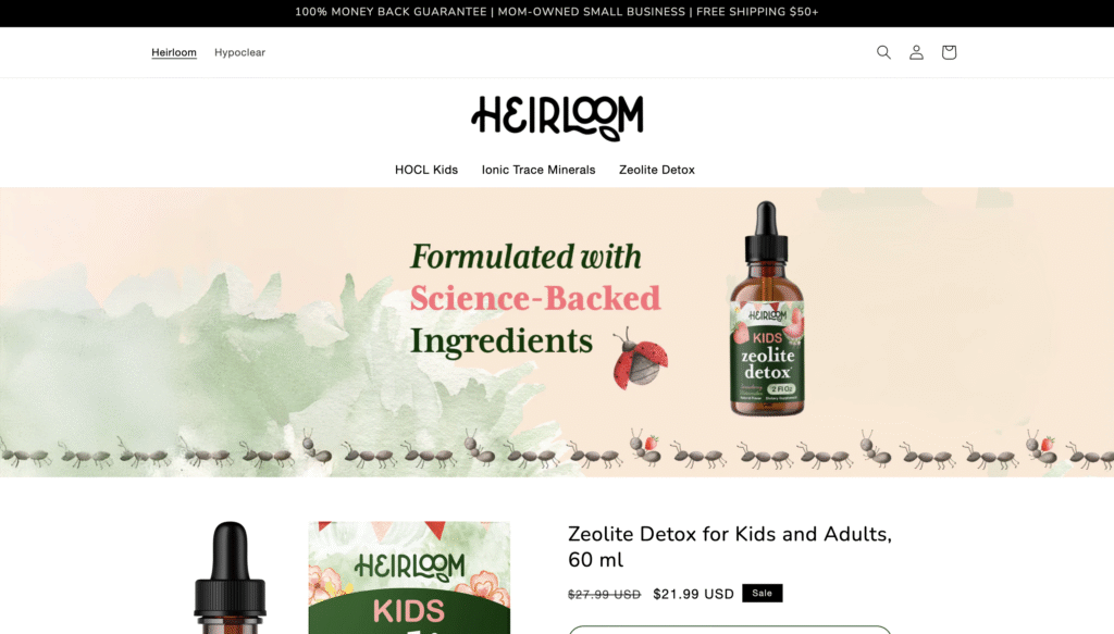 A primary request of the client was to have both Heirloom and their secondary company Hypoclear’s products available to shop from on the same site, sharing features like the shopping cart, but having different branding, headers and designed content. I was able to source some similar shopping experiences to this in the ideation process as well, helping to conceptualize how it might work when designed. I then created a prototype of the website and presented it to the client, which they approved.